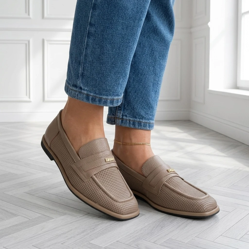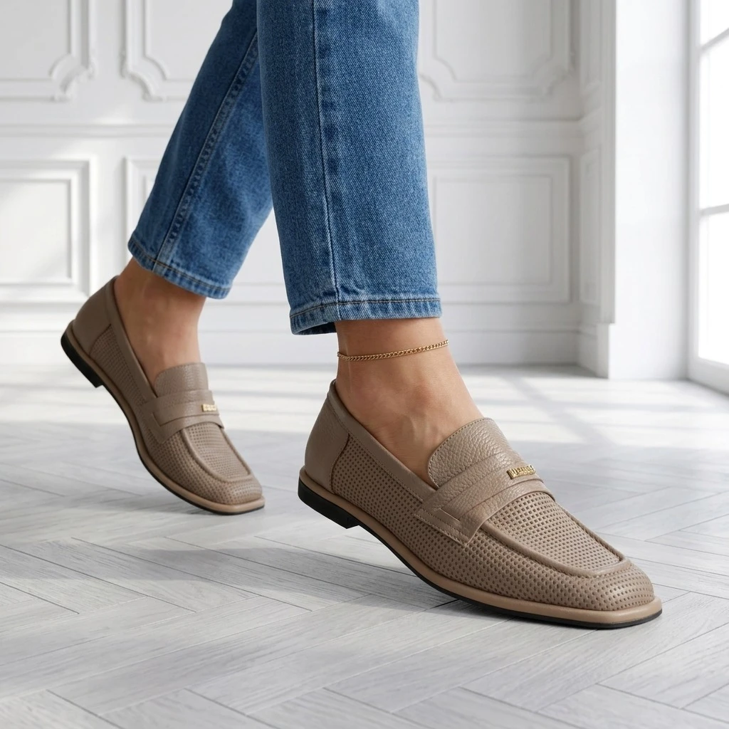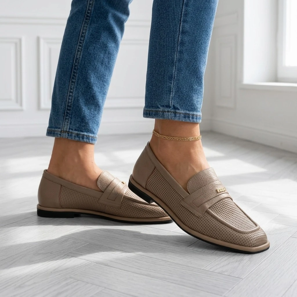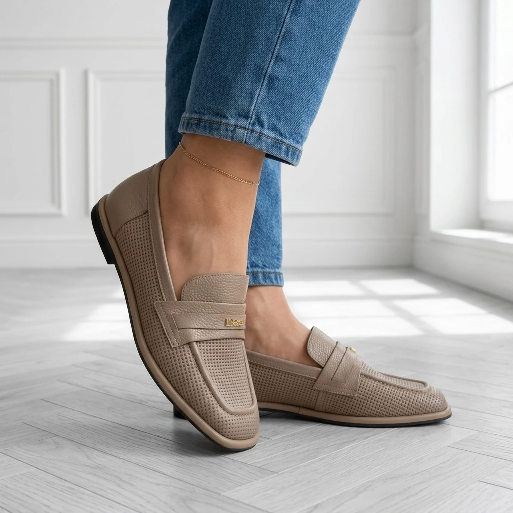 Beż i ażurowy wzór — półbut na każdą okazję.