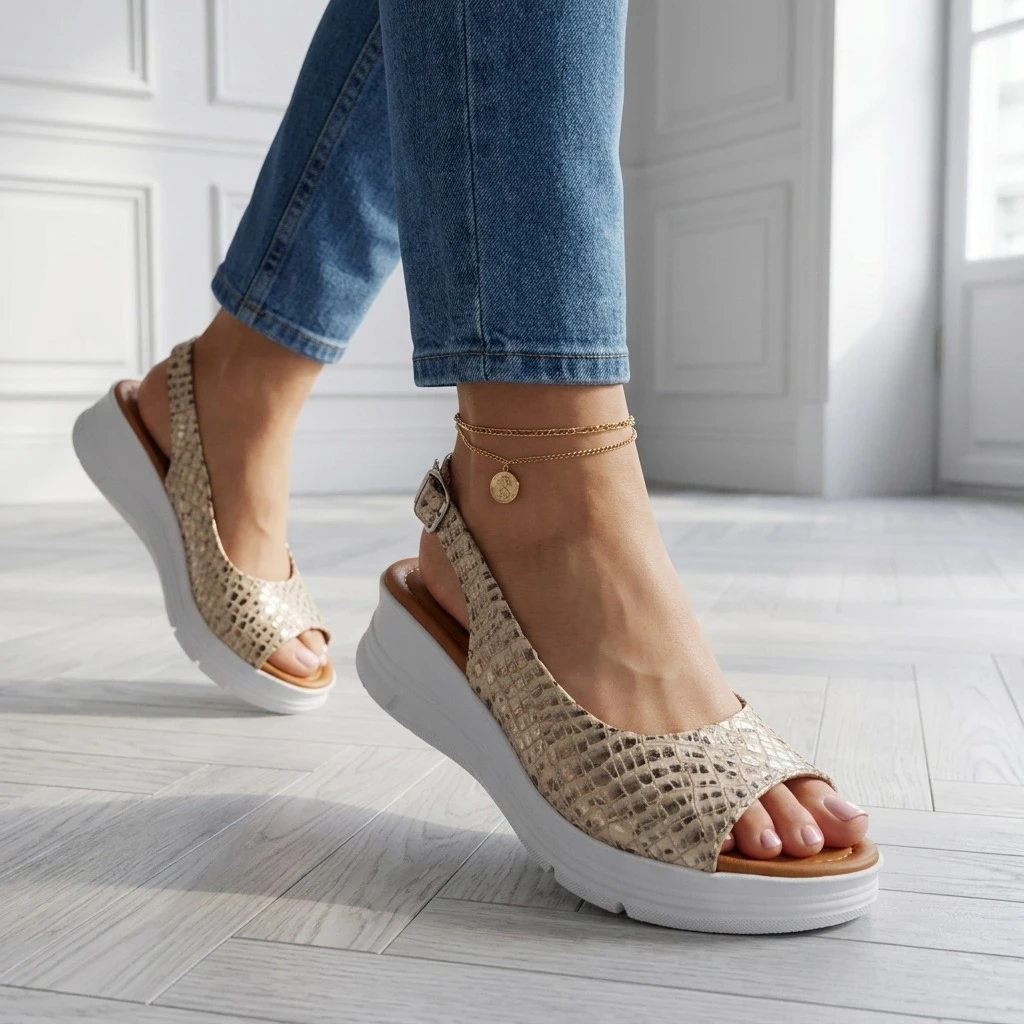 Beżowy wąż na platformie — lato z charakterem.