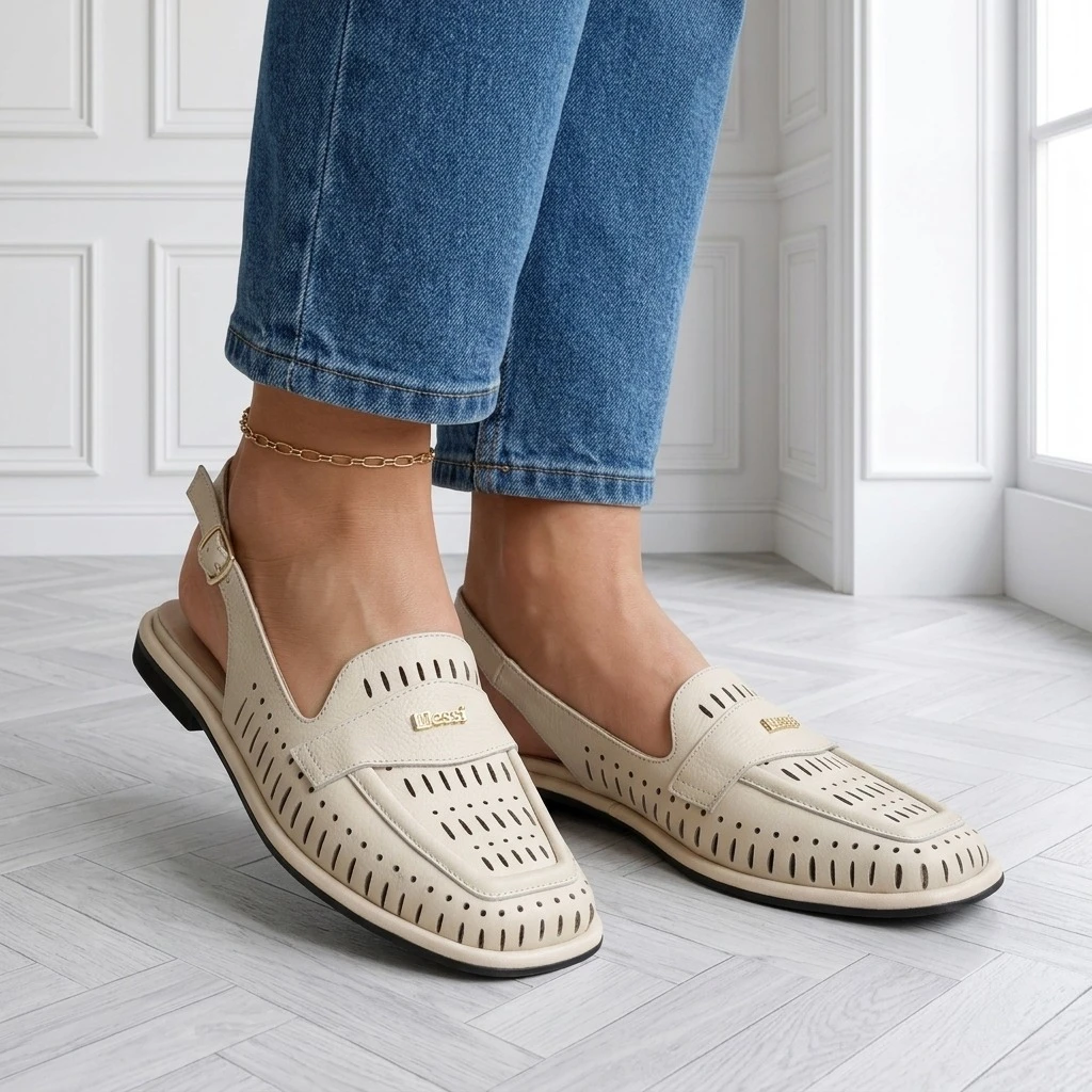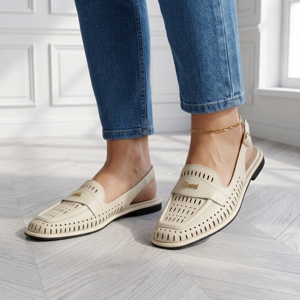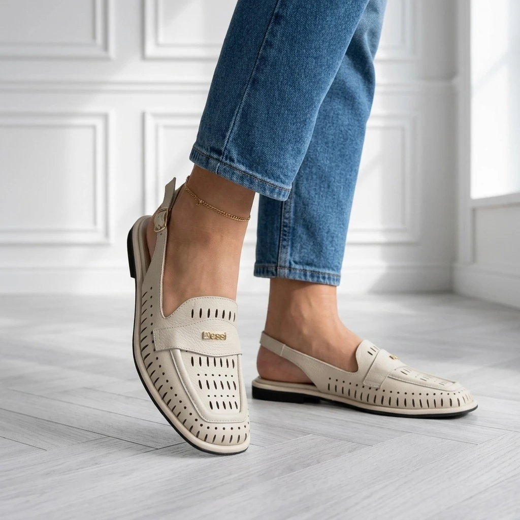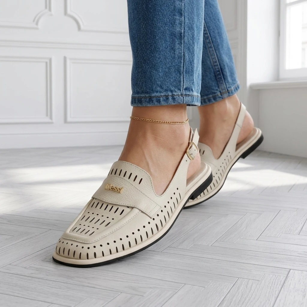 Kremowa skóra z ażurowym wzorem — lekkość lata w eleganckiej formie.